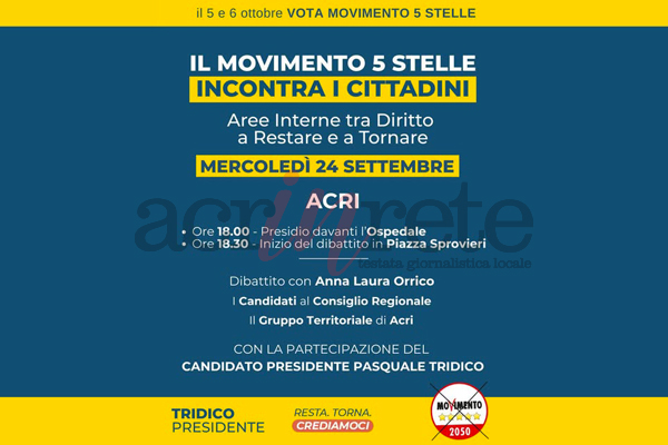 Regionali. Tridico ad Acri. Infrastrutture e sanità