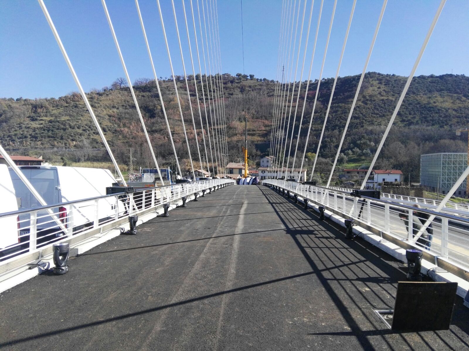 La struttura che unisce i due quartieri della città separati dal fiume Crati è partito 15 anni fa. L'estate scorsa - il 23 luglio - è stata messa in opera l'”antenna”, l'elemento che fa da sostegno ai cavi di acciaio che sostengono l'impalcato stradale che ha una lunghezza di 140 metri. La struttura non passa inosservata, il pilone in acciaio è alto 104 metri e pesa 800 tonnellate. Fra le ditte impegnate nella costruzione dell'imponente opera ingegneristica figura anche una ditta acrese, la Sposato Costruzioni, che ha anche curato gli ultimi lavori prima dell'inaugurazione. Il ponte “San Francesco” è stato “battezzato” con un grande spettacolo di luci, suoni e danze. Tra angeli e pianoforti volanti il cielo è stato iluminato, oltre che dai fuochi d'artificio, da centinaia di proiettori colorati, uno spettacolo mozzafiato curato dall'azienda acrese G & G Service, che si occupa, ormai da diversi anni, di allestimenti per lo spettacolo e che sta riscuotendo un grande successo non solo in Calabria ma in tutta Italia. |