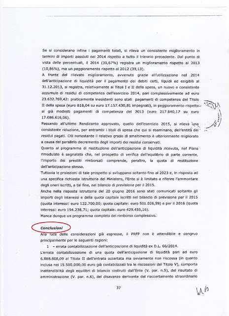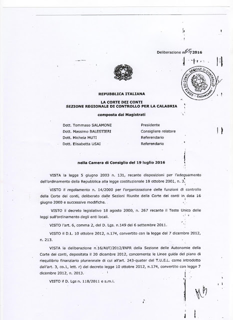 Un po’ perché pensavo che la minoranza (praticamente solo il sottoscritto) dovesse sempre adeguarsi alla maggioranza, un po’ perché c’era quello che sembrava un progetto alto e nuovo da realizzare, dietro al quale ancora oggi si nascondono tutti quei consiglieri disposti a coprirsi di ridicolo pur di non mollare lo sgabello. Appena insediati ci siamo ritrovati davanti al diktat della Corte dei Conti che imponeva il dissesto, e di fronte a tutti gli scienziati economisti che dicevano che dovevamo opporci al dissesto con un piano di rientro, solitario come il passero di Leopardi, sollevai le mie obiezioni più che altro per ragioni politiche: opporsi al dissesto imposto dalla Corte dei Conti, significava scaricare il grosso delle responsabilità dalle spalle di chi l’aveva follemente creato, con il rischio di farsene carico, soprattutto nella malaugurata ipotesi che il ricorso non venisse accettato, facendo così poi ritrovare il sindaco Tenuta con il cerino acceso in mano. E in ogni caso ritenevo che un piano di rientro lacrime e sangue avrebbe fatto più danni che una dichiarazione di dissesto, per una serie di motivi che non starò qui a elencare. Bisognava, a mio avviso, lasciare la responsabilità morale, politica e penale del disastro al sindaco Trematerra che, solo nel 2011 (anno a cui si riferiscono i controlli effettuati dalla Corte che sortirono l’imposizione del dissesto), aveva creato la quasi totalità degli 8 milioni e passa di debiti fuori bilancio (grave reato amministrativo). Mi permisi anche di manifestare la mia contrarietà alla liquidazione, che sembrava opportunistica e clientelare, dei debiti fuori bilancio che fu approvata in Consiglio Comunale senza voti contrari. Scrivevo in uno dei tanti articoli in cui esprimevo il mio singolare e modesto punto di vista, che il gigantesco danno economico e finanziario contro l’Ente l’avrebbe dovuto pagare il sindaco Trematerra e tutti i Responsabili di Settore che, prestandosi alle pressioni della parte politica, in spregio alla legge Bassanini, obbedivano supinamente alle imposizioni sconsiderate della maggioranza, anche a quelle pressioni che portarono il Comune di Acri alla ribalta per infiltrazioni mafiose (Inchiesta Acherunzia). In un articolo concludevo “chi ha sbagliato dovrebbe pagare e non i cittadini incolpevoli, che stanno mostrando già troppo senso della misura e della tolleranza, perché se fossimo nel luogo del vostro medioevo mentale e culturale, verrebbero all’assalto delle vostre sontuose ville con i forconi”. Ma purtroppo la confisca dei beni, per pagare il danno erariale commesso dai politici, in Italia forse non sarà mai realtà. (Leggi qui) E’ inutile ricordare che l’articolo scatenò l’attacco dei trematerrestri contro il sottoscritto con minacce, calunnie e raffiche di querele andate a vuoto. Ma torniamo al dissesto e al piano di rientro che il sindaco Tenuta, per mancanza di coraggio o per coda di paglia, volle a tutti i costi perseguire, con una tassazione vessatoria a carico dei cittadini, assumendo sulle proprie spalle dritte la responsabilità e sollevando in parte o facendo dimenticare alla cittadinanza le gravi colpe del suo ex socio dissestatore. La preparazione del piano di riequilibrio, per scongiurare il dissesto, è costata più di due anni di preparazione e elaborazione da parte di luminari di diritto contabile e un dispendio notevole di risorse. Oggi, martedì 20 settembre, resterà una data funesta per il sindaco Tenuta. Avrà avvertito una scarica di extrasistoli quando gli avranno comunicato il responso della Corte dei Conti. Due anni persi per quello che adesso si appaleserà come un enorme imbroglio ai danni dell’intera città. La Corte dei Conti, Sezione Regionale di Controllo per la Calabria, con Deliberazione n° 65/2016, ha deliberato di non approvare il piano di riequilibrio finanziario pluriennale del Comune di Acri (CS) avendo valutato lo stesso non congruo ai fini del riequilibrio finanziario dell’Ente. Ecco Signor Sindaco, adesso non vogliamo sapere cosa farai con quel cerino acceso in mano. Segue copia deliberazione Corte dei Conti, per brevità direttamente dalle conclusioni. ![]() ![]() ![]() ![]() |
