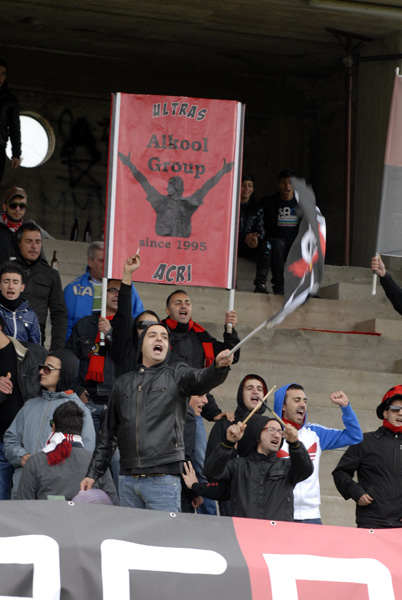Battipagliese (4-4-2) Loccisano 6; Sparano 5, Renna 5, (35'st Cataruzzolo sv), Caruso 5, (38'st Biancaldi sv), Follera 5; Troisi 5, Panico 6.5, Pingue 6.5, (29'pt Ripoli 6.5), Serrapica 6; Tortora 6.5, De Cesare 6.5In panchina: Della Corte, Sasso, De Feo, Gallicchio Allenatore; La Cava 6 Marcatori: 4'pt Galantucci (rig. A), 6'pt De Cesare (B), 14'pt Deffo (A), 40'st Cavatorti (A) Arbitro: Carrisi di Brindisi 6 Note: Circa duemila spettatori, di cui una cinquantina ospiti. Ammoniti; Deffo (A), Pingue, De Cesare (B). Angoli; 4-4. Recupero; 2'pt, 3'st Acri - Mister Ferraro deve rimodulare l'assetto tattico per via delle defezioni del portiere Di Iuri e di Domanico, a mezzo servizio. In porta piazza Mauro, sull'out sinistro Mancino e sposa Filidoro a centrocampo. In avanti Galantucci prima punta, Visciglia dietro di lui e Berligeri e Foderaro sulle fasce. In campo, quindi, un 4-3-1-2. Campani in formazione tipo con Serrapica regista dietro De Cesare e Tortora, Panico e Pingue sono gli esterni alti. L'avvio è scoppiettante anche perché le due squadre non badano a tanti tatticismi. Giocano e lasciano giocare. Al primo affondo l'Acri passa; un cross di Foderaro viene fermato con le mani da Renna. Rigore netto che Galantucci trasforma alla perfezione. La Battipagliese non è formazione che va in tilt. Si riporta subito in avanti e perviene al pari con De Cesare. Mancino viene colto in controtempo da Panico che vede in area il numero undici tutto solo. Per l'ex del Chievo è un gioco battere Mauro. I campani acquistano coraggio e vogliono conquistare un risultato positivo per dimenticare la sconfitta interna col Noto e risalire in classifica. Salgono in cattedra De Cesare e Tortora ben supportati da Panico e Serrapica. Al 10' Tortora scatta sul filo del fuorigioco ma il suo tiro lambisce il palo. L'Acri s scuote, la gara è avvincente. Al 14' Visciglia batte una punizione in area, i campani abbozzano il fuorigioco ma dalle retrovie spunta Deffo che di testa batte Loccisano. Comunale in visibilio e rossoneri in auge. Al 35' Galantucci, uno dei migliori, vede Berlingeri sull'out sinistro, l'under tira di prima intenzione ma la palla accarezza il palo. E' un buon momento per i locali mentre i campani spariscono. La Cava toglie Pingue, bravo ma nervoso. La Battipagliese si rivede dalle parti di Mauro al 40' con Tortora che da buona posizione spara a alto mentre al 45' va vicinissimo al pari con Ripoli sotto porta di piatto destro manda a lato. Campani discontinui ed imprecisi, l'Acri c'è ma il secondo tempo si apre con De Cesare e compagni che si buttano in avanti con delle ottime trame di gioco. Nel giro di tre minuti sfiorano il pari con Tortora che prima in semi rovesciata sfiora il palo e poi calcia di piatto ma Mauro è reattivo. Si tratta di fiammate, l'Acri controlla bene, Deffo e Bilotta sono baluardi, Foderaro e Galantucci tengono la squadra alta. Ma i campani conquistano terreno a metà del secondo tempo, Ferraro capisce che è il momento di rinforzare il centrocampo con qualità e quantità. Spazio, quindi, a Domanico e Cavatorti. La Battipagliese cerca il pari e lascia ampi spazi. Al 40' Berlingeri scatta sull'out sinistro e vede al centro il libero Cavatorti che di piatto insacca. E' il gol della sicurezza, è la rete che spezza le gambe ai campani che sul finire con Biancaldi possono accorciare le distanze ma il suo colpo di testa sfiora il palo. Quindi fischio finale, applausi e abbracci, il momento positivo dei rossoneri continua. INTERVISTE. Mister La Cava è il primo a giungere in sala stampa e tiene subito a sottolineare l'errore commesso da suoi in occasione della seconda rete; "non è possibile applicare la regola del fuorigioco sulle palle inattive in trasferta, arbitro e collaboratore non sempre sono coraggiosi nel segnalarlo. I miei ragazzi hanno sbagliato nell'attuarlo e si sono fatti cogliere impreparati sull'intrusione di Deffo. Peccato perché avevamo ristabilito il pari ed eravamo in partita. Siamo stati discontinui e sfortunati con Ripoli sul finire del primo tempo. L'Acri? Una buona squadra, è in un momento positivo dettato da entusiasmo e tanta corsa, ma non è certamente una formazione forte e da primato." Deffo è soddisfatto; "la mia rete non è casuale, proviamo questo schema in allenamento e spesso ci riesce. Dedichiamo questa vittoria al prof. Ceravolo che è diventato padre." Mister Ferraro, dopo la terza vittoria consecutiva, non si scompone e ribatte a La Cava; "nessuno ha mai detto che noi siamo da primato, oggi ci mancano trenta punti per la salvezza." Sulla prestazione dice; "abbiamo corso pochi pericoli che contro uomini come De Cesare e Tortora ci possono stare, ma alla fine la vittoria mi sembra legittima." Sull'assetto tattico spiega; "al momento mi pare lo schieramento più adatto alle caratteristiche dei giocatori che ho, Filidoro a centrocampo non è una novità, Visciglia è prezioso dietro alla prima punta, Berlingeri è bravo nel tagliare e accentrarsi. Ho inserito Domanico per dare vivacità ma poi ho ritenuto spostarlo in difesa dove stavamo subendo troppo mentre Cavatorti non è una sorpresa perché spezza il gioco avversario ma sa anche inserirsi bene nell'area avversaria." Infine un pensiero sul momento positivo; "ritengo che sia la vittoria del collettivo, un allenatore non deve pensare solo alla tattica ma anche a cercare di formare il gruppo. Durante la settimana lavoro anche su questo aspetto, ho giocatori che si sacrificano sia in campo che restando in panchina, al momento è la nostra arma vincente."