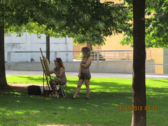 Arte e musica formano un legante nello spettacolo di colori e suoni. Questo è accaduto domenica ad Acri, dove si è svolto il primo concorso di pittura estemporanea, organizzato dal Lions Club di Acri. L’evento ha visto protagonisti 21 artisti venuti da tutta la Calabria: − Jeanfrancois Pugliese; − Lucia Simonetti; − Cosmo Francesco Capalbo; − Costanza Guido; − Walter Barone; − Antonio Curto; − Schiavonea Morrone; − Alice Pinto; − Samantha Amodio; − Deborah Amodio; − Francesca Morrone; − Stefania Toscano; − Federica Nigro; − Flavio Sposato; − Antonio Oliva; − Antonio Viscardi; − Emilia Imbrogno; − Daniele Cofone; − Monica Siciliano; − Asia Siciliano; − Rosa Scalise. Questi artisti, in sei ore circa, hanno prodotto opere di eccellente fattura e di sicuro impatto visivo. Il tema affrontato era legato al territorio ed alle bellezze di acresi, ma non sono mancate le opere raffiguranti panorami immaginari ed interpretazioni libere di Acri. Ha molto incuriosito l’esibizione artistica dell’Associazione artistica “Paint up me”, un gruppo di ragazze che si sono sfidate nell’arte del Body Painting, cioè dipingere sul corpo di una modella, l’opera ha suscitato molto interesse da parte dei molti curiosi accorsi negli spazi della villa comunale (gazebo), a loro è stato dato un premio speciale della giuria. Non sono mancati anche artisti in erba, che si sono cimentati con tele e colori, la più piccola partecipante aveva 8 anni. La serata è continuata nella sala consiliare di palazzo Sanseverino-Falcone ed è stata arricchita da un concerto di musica classica del Trio Kronos, (Margherita Capalbo, pianoforte; Giuseppe Recchia, clarinetto; Mario Mattia Perticaro, oboe), che hanno aggiunto il suono ai colori. Alla fine della serata sono stati consegnati a tutti gli artisti, un Attestato di partecipazione . Gli artisti hanno lasciato le loro opere, le quali verranno vendute, ed il ricavato sarà totalmente devoluto agli ammalati oncologici in età pediatrica. I vincitori sono stati: 1° Monica Siciliano; 2° Antonio Viscardi; 3° ex equo - Flavio Sposato ed Antonio Oliva. Il Lions Club col Presidente Dott. Giorgio Capalbo, soddisfatti dell’ottimo risultato dell’iniziativa ed ancor più dell’ottima qualità degli artisti intervenuti hanno descritto la giornata come un evento culturale importante per Acri e che tende a far conoscere il nostro paese nei suoi aspetti artistici e naturalistici. Le varie opere saranno esposte prossimamente all’interno dell’evento “Artistinstrada” organizzato dall’AIPA, per giorno 3 agosto nel rione Padia, nel corso della manifestazione, oltre alla semplice visione le opere saranno mese in vendita.