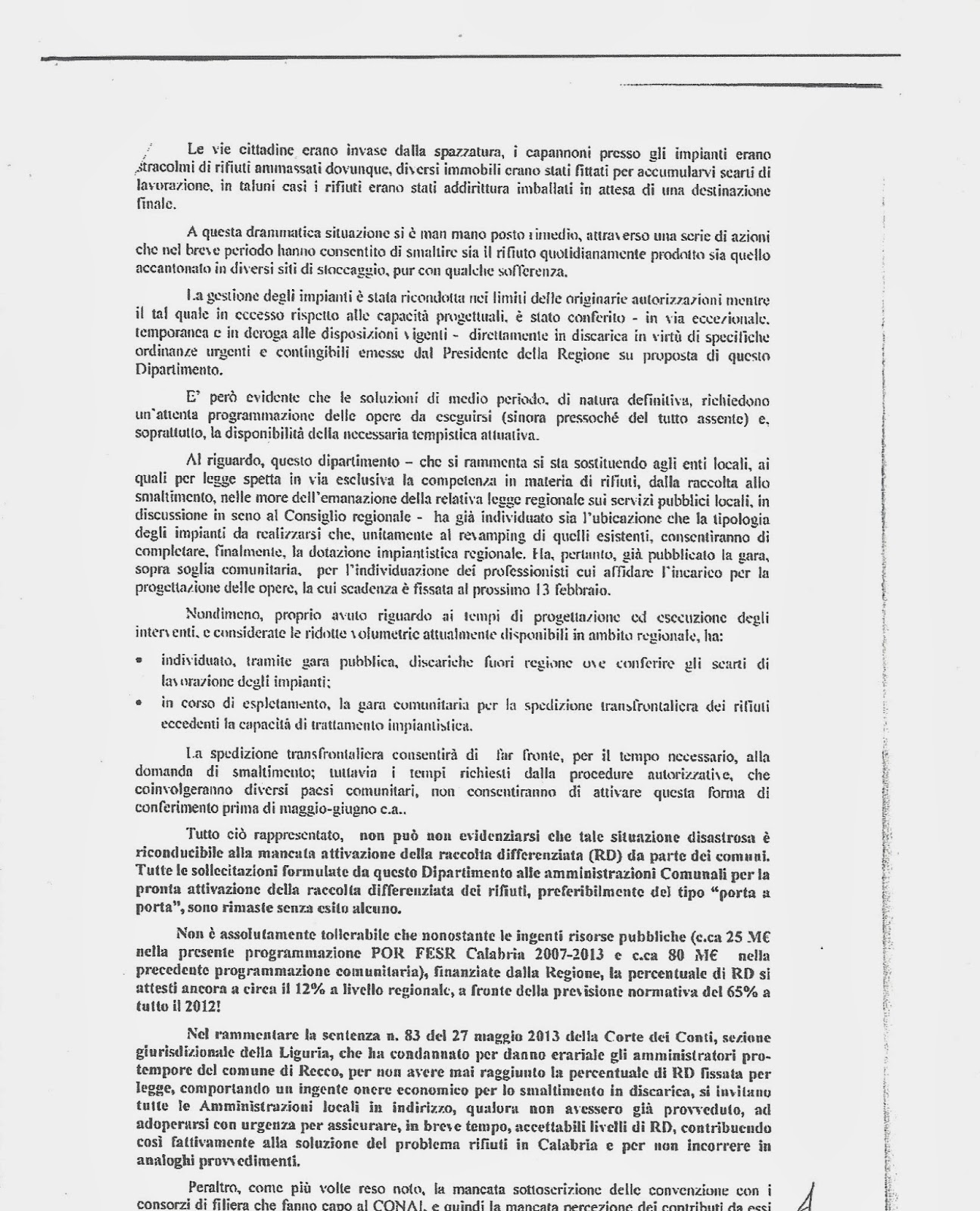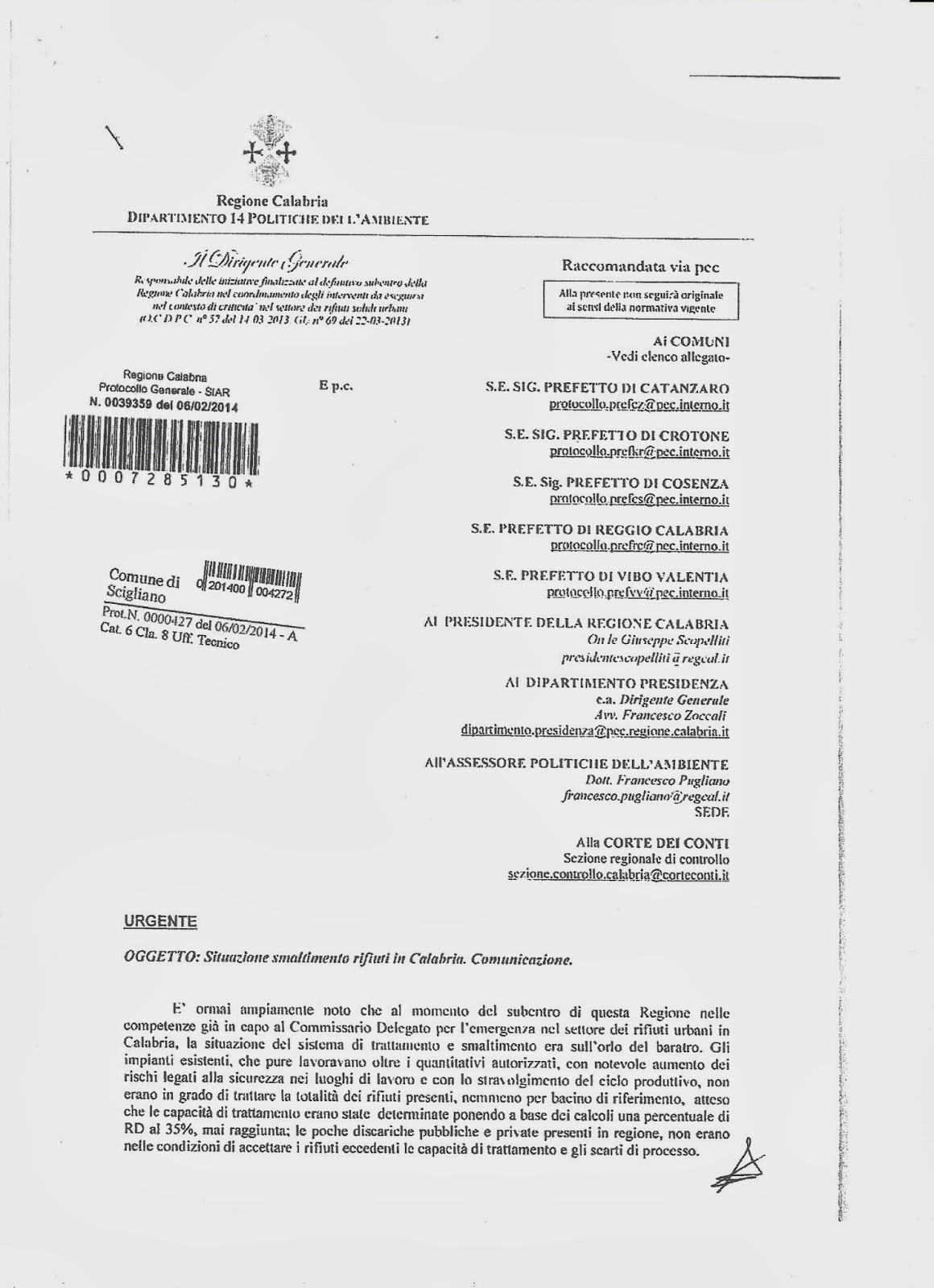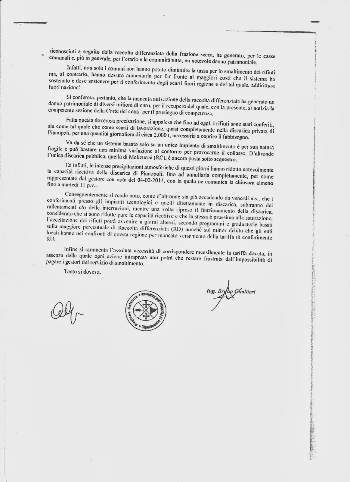 Premesse le doverose scuse a tutta la cittadinanza per l'aggravarsi dell'emergenza rifiuti, dovuta al blocco totale dell'unica discarica esistente in Calabria, precisiamo quanto segue.