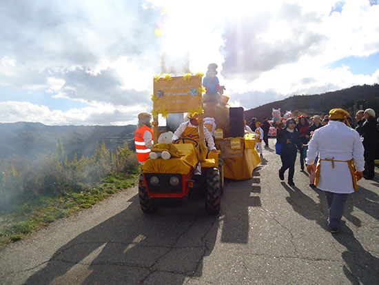 Completa il tutto, il piccolo fornaio che siede sulle cupola del forno e che stringe a sé un altro pacchetto, con su scritto, Amore. Tutto, dal forno, al carretto, alle decorazioni, ai costumi, richiama il dorato, il colore del pane appena sfornato, ma anche della luce, del calore e chissà, forse anche della forza della vita che sempre risuona… e che, soprattutto nei momenti più difficili della vita ci accompagna e ci sostiene. Al seguito del carretto, con il suo fumante comignolo, i piccoli e i grandi fornai del Sassolino, che a suon di musica, sfornano i desideri, consegnandoli ai presenti (insieme a piccoli panetti). Il forno dei desideri ha percorso le strade affollate e trepidanti di San Giacomo d’Acri, durante la diciottesima edizione del Carnevale Sangiacomese… ma anche in una breve, ma intensa sfilata le piazze (bagnatissime dalla pioggia) di Acri. Di entrambi i pomeriggi, rimangono nei nostri cuori i sorrisi, gli occhi luminosi e i visi raggianti della gente, soprattutto dei bambini, che, con i loro candidi cuori, incoraggiano chi, come noi, è vicino al volontariato, nel cercare di fare e progettare sempre… per gli altri… con gli altri e per un mondo sereno e gioioso. Il Sassolino ringrazia tutti coloro i quali, in ogni forma o modo hanno contribuito alla realizzazione del “Forno dei desideri”, sperando di rincontrarci presto, in nuove splendide avventure. ![]() ![]() ![]() ![]() ![]() ![]() ![]() ![]() ![]() |