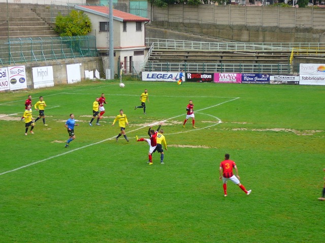 REGGIOMEDITERRANEA: Caputo 6, Cuzzola 5, Martino 5 (10′ st Marra 5), Bossi 5, Marciano’ 5.5, Brancati 5, Ricciardi 5.5 (17′ st Lo Giudice), De Marco 5.5, Zappa 5.5, Sapone 5 (26′ st Vigoroso), Siclari 5.5. In panchina: Suraci, Basile, Coletta Neri. All.: Crupi 5 ARBITRO: Francesco Palmieri di Crotone 6 (Assistenti: Roberto Basile e Luigi Benedetto di Crotone) MARCATORI: 8′ pt Caputo, 19’pt e 13′ st Petrone NOTE: Angoli 3 a 0, spettatori: 500 circa, Recuperi: 0 pt, 3′ st. Ammoniti: Petrassi (A), De Marco (R) Acri – Come sette giorni fa a Taurianova, l’ Acri chiude agilmente la pratica Reggiomediterranea rifilando agli avversari tre reti, tre gol di ottima fattura, e amministrando una gara che non ha quasi mai visto gli avversari combattivi. Già al 5′ il solito Caputo prova a scardinare la barriere avversarie: tiro ravvicinato ma il suo omonimo estremo difensore avversario para senza troppi fronzoli. Il centravanti brindisino dell’Acri non sbaglia due volte e tre minuti dopo, raccogliendo a centro area un assist di Mancino, spiazza la difesa avversaria. Passano solo dieci minuti e i rossoneri ipotecano già la gara con la rete del buon Petrone: il n.9 rossonero, servito da Viteritti, controlla di petto e fa partire dalla distanza un bolide spiovente che si insacca nell’angolino. Quasi nessuna reazione dagli avversari che prima dell’intervallo rischiano anche il triplo svantaggio per una pericolosa punizione di Caputo dal limite. Triplo vantaggio dei padroni di casa che arriva al 12′ della ripresa: cavalcata di Viteritti sulla destra e doppietta personale per l’ incisivo Petrone. Al 21′ da annotare anche una traversa di Caputo e un’occasione alla mezz’ora con Mancino. Nonostante il tranquillo vantaggio, padroni di casa mai sazi: al 34′ arriva la rete del poker ma il direttore di gara annulla un eurogol a Cormaci per dubbio fuorigioco. La vittoria odierna, figlia di una crescita sotto gli occhi di tutti, proietta i rossoneri momentaneamente al 4^ posto in classifica a quota 13 punti. Quattro risultati utili consecutivi per gli uomini di Pascuzzo (oggi non in panca perchè squalificato), quattro partite senza subire reti e sette gol in otto partite per Antonio Caputo che si conferma leader dell’attacco dell’Acri: “La squadra sta giocando bene come il mister vuole – dice Caputo a fine gara –ed io ho un ottimo feeling con i miei compagni che mi mettono in condizione di fare bene“. Domenica si va a Castrovillari per un derby che può anche essere un vero banco di prova per il cambio di rotta dell’Acri: “Sicuramente sentiamo molto questa partita, il Castrovillari è una grande squadra ma anche le squadre che abbiamo incontrato fino a questo momento non erano da meno anche se non ci hanno messo in difficoltà“. ![]() ![]() ![]() ![]() ![]() ![]() ![]() ![]() ![]() ![]() ![]() ![]() ![]() ![]() ![]() ![]() ![]() ![]() ![]() ![]() ![]() ![]() ![]() ![]() ![]() ![]() ![]() Fonte ottoetrenta.it Foto Giuseppe De Marco |