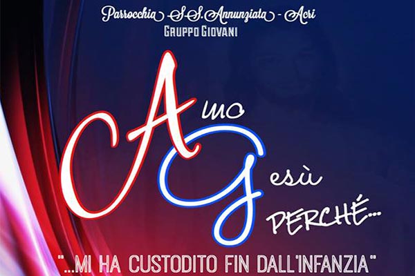 Terzo appuntamento per “Amo Gesù perché...”, l’evento in cui i giovani incontrano i giovani, che sta riscuotendo un grande successo presso la Parrocchia SS. Annunziata di Acri e che torna venerdì 16 febbraio, alle ore 20:30.