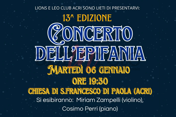 Lions club Acri. XIII edizione del concerto dell'Epifania